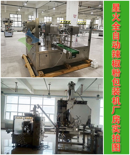 全辣椒粉包装机设备介绍:星火全自动辣椒粉包装机是由一台CJSL2000螺旋计量机和一台VFS7300立式充填包装机组成,袋装辣椒粉包装机其专业的称量式计量方式已获国家。袋装辣椒粉包装机特别适宜较大粉尘的超细粉状物料的计量包装。集计量、制袋、包装、封口、打印、计数于一体,配有先进料位开关,辣椒粉包装机也可以增加除静电装置和吸尘装置。有效地解决了粉尘全自动包装的难题,袋装辣椒粉包装机适用包装各种辣椒粉、五香粉、黑胡椒粉、椒盐粉、玉米粉、淀粉、孜然粉、花椒粉、腻子粉、防水涂料等各种粉末产品,全自动辣椒粉包装机适合纸袋形式:如枕式袋、立式袋、三边封、四边封等。