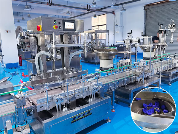 双头定量灌装机械采用PLC触摸屏控制器,可以实现一键式启停、自动运行的便捷式运作。在正式投产前,需提前接通电源,检查灌装管理,操作人员在彩色显示屏幕上设定好灌装的重量,且熟练掌握快\慢切换点、回吸时间,人工将空的容器桶送至称重台,控制系统将会自动识别到桶位并进行去皮归零,按下双头定量灌装机械的启动按钮,两个灌装头将开始同步下降插入桶口,开启大流量快速灌装,在接近目标值时可自动切换为小流量补料,直至达到预设值后关闭阀门,然后启动真空回吸系统,防止物料滴漏,完成灌装后,灌装头自动抬起,操作人员将满桶推出,进入旋盖、压盖、贴标等后续工位的操作。